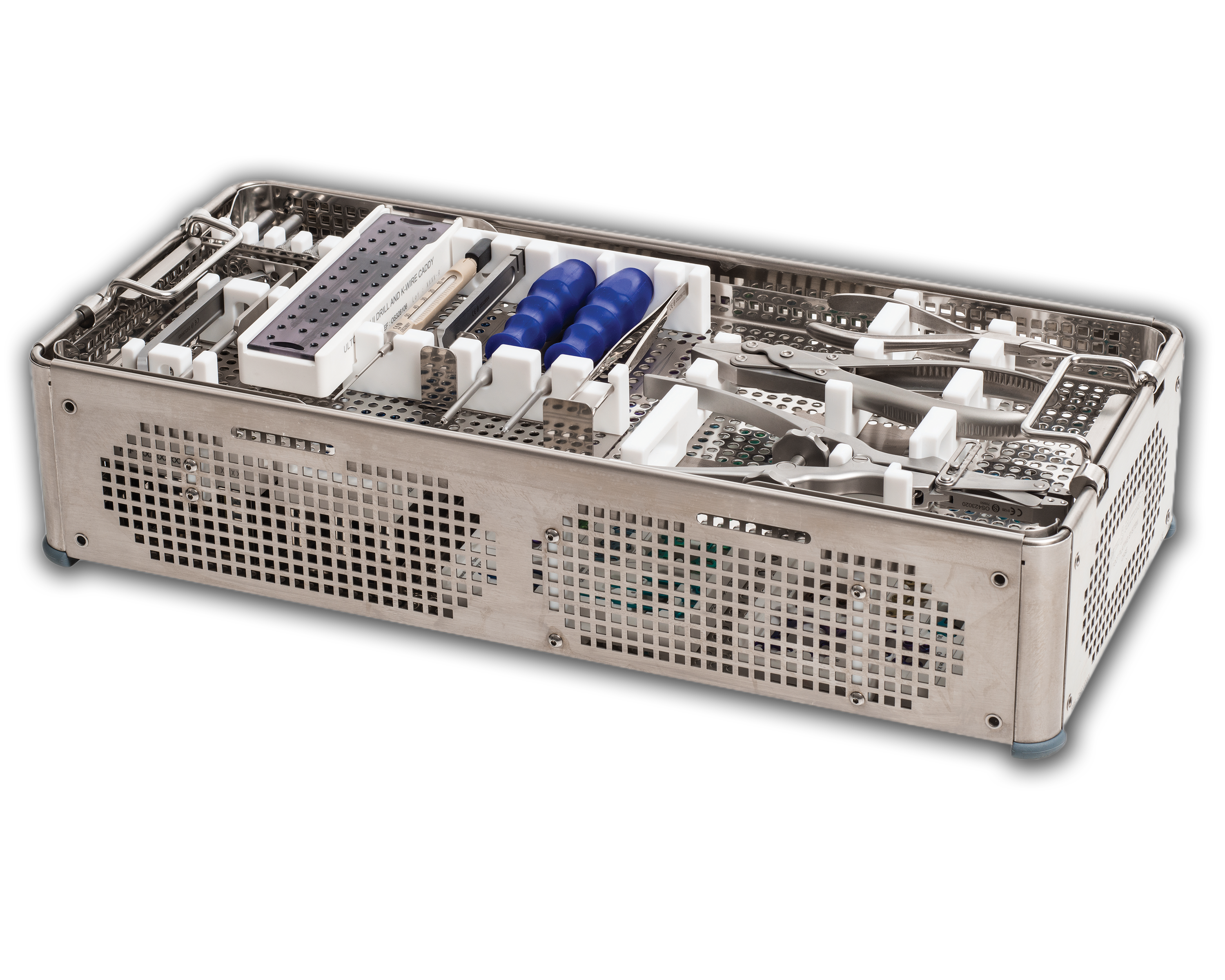 One tray of instruments for ease of use and efficiency. Colour coding of plates and screws to aid plate selection. Small and large compression and distraction devices available. Sterile packaged and non sterile packaged implants options.